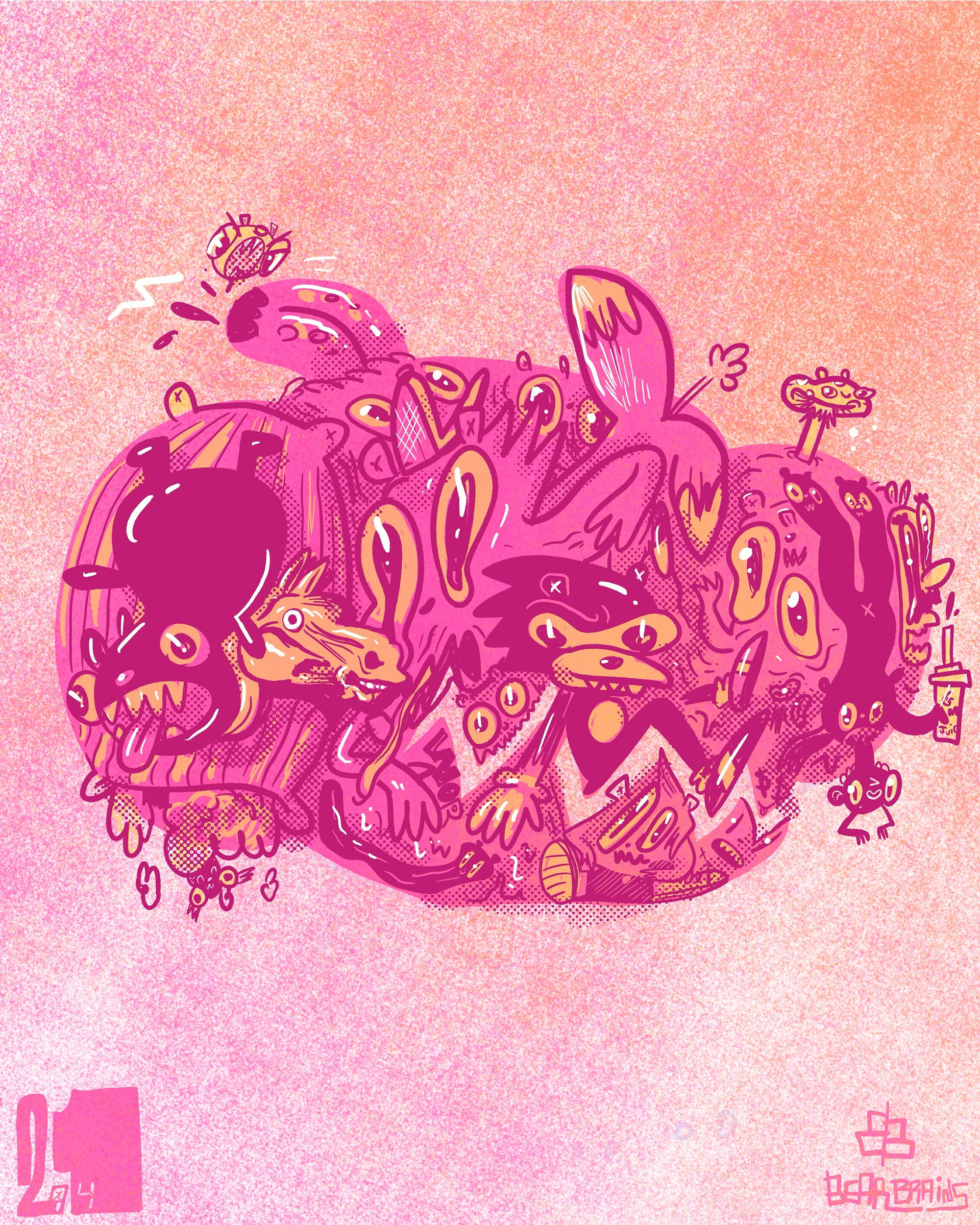 My main goal was to just go all out on detail so the final product would be as crazy as possible. Over the course month I drew hundreds of characters and objects, filling every nook and cranny of the silhouette.