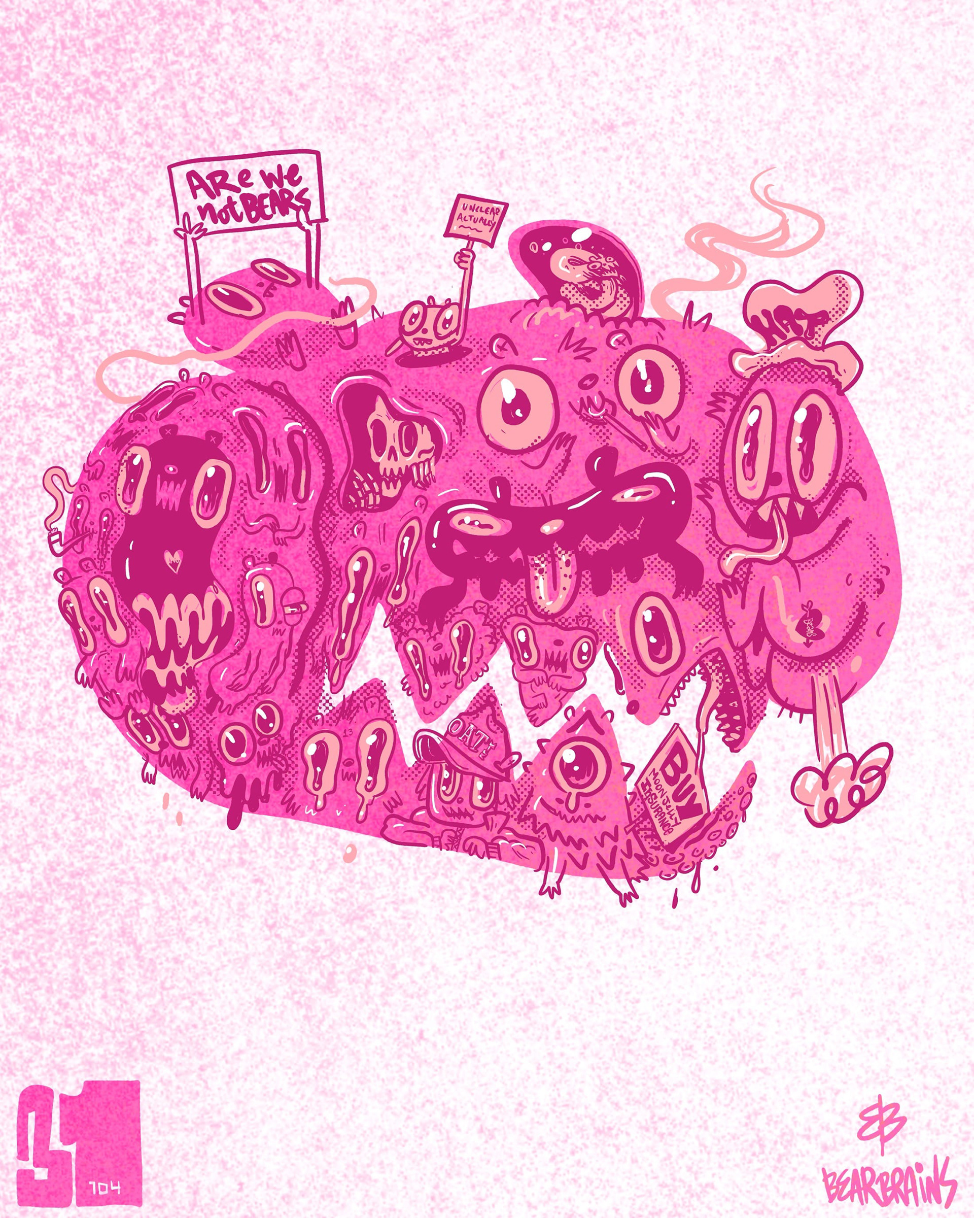 The final animation came together better than I expected. Each frame ended up being its own little world of characters and objects, all contained within Noodle Bear's familiar silhouette. Looking back, I'm glad I didn't plan too much and just let myself get lost in the details. It was a fun challenge to see how much I could pack into each drawing while still maintaining the overall shape needed for the animation. In the end, this project was just about having fun with drawing and seeing what happens when you combine a ton of detailed illustrations into a second of movement. Maybe next time I'll try something even weirder.