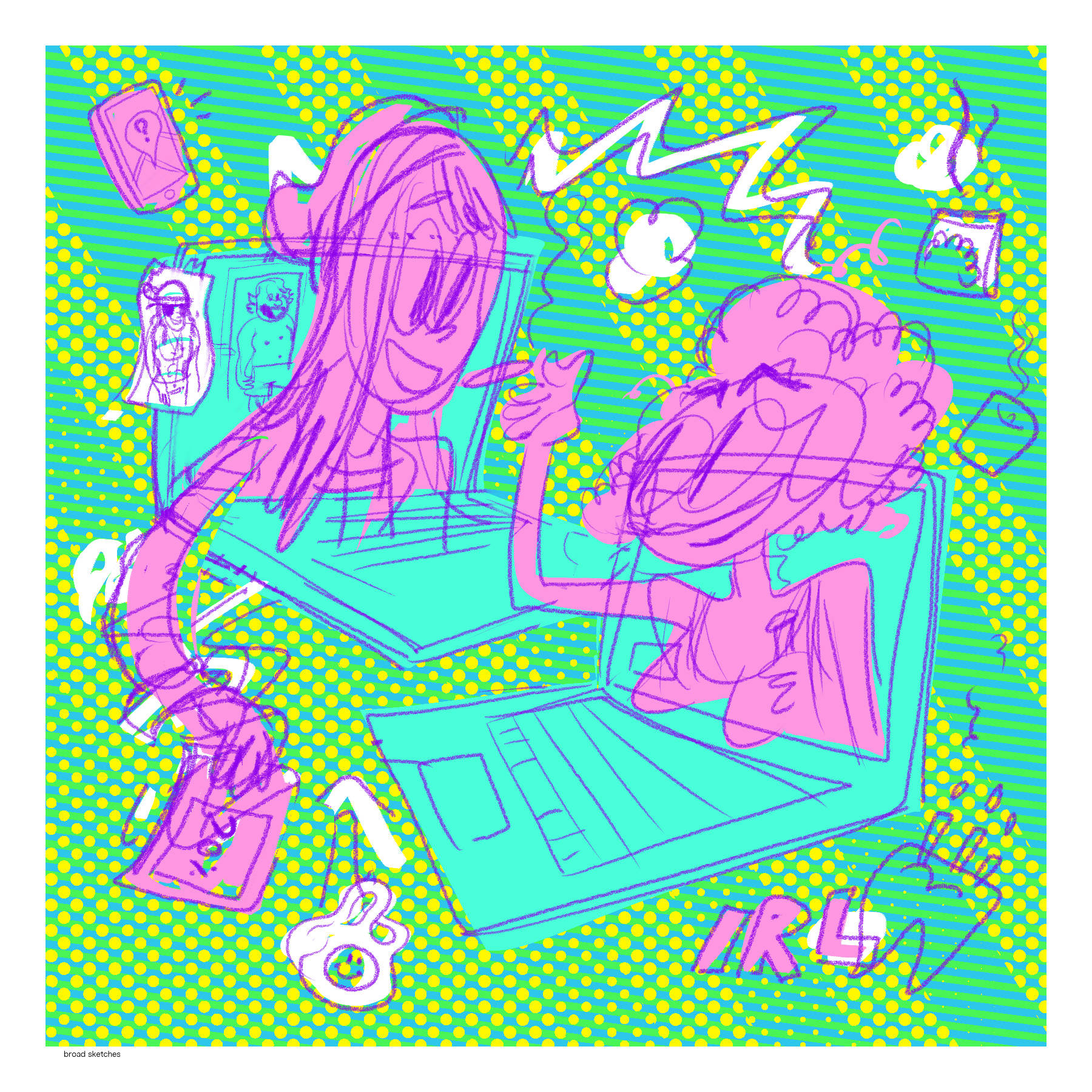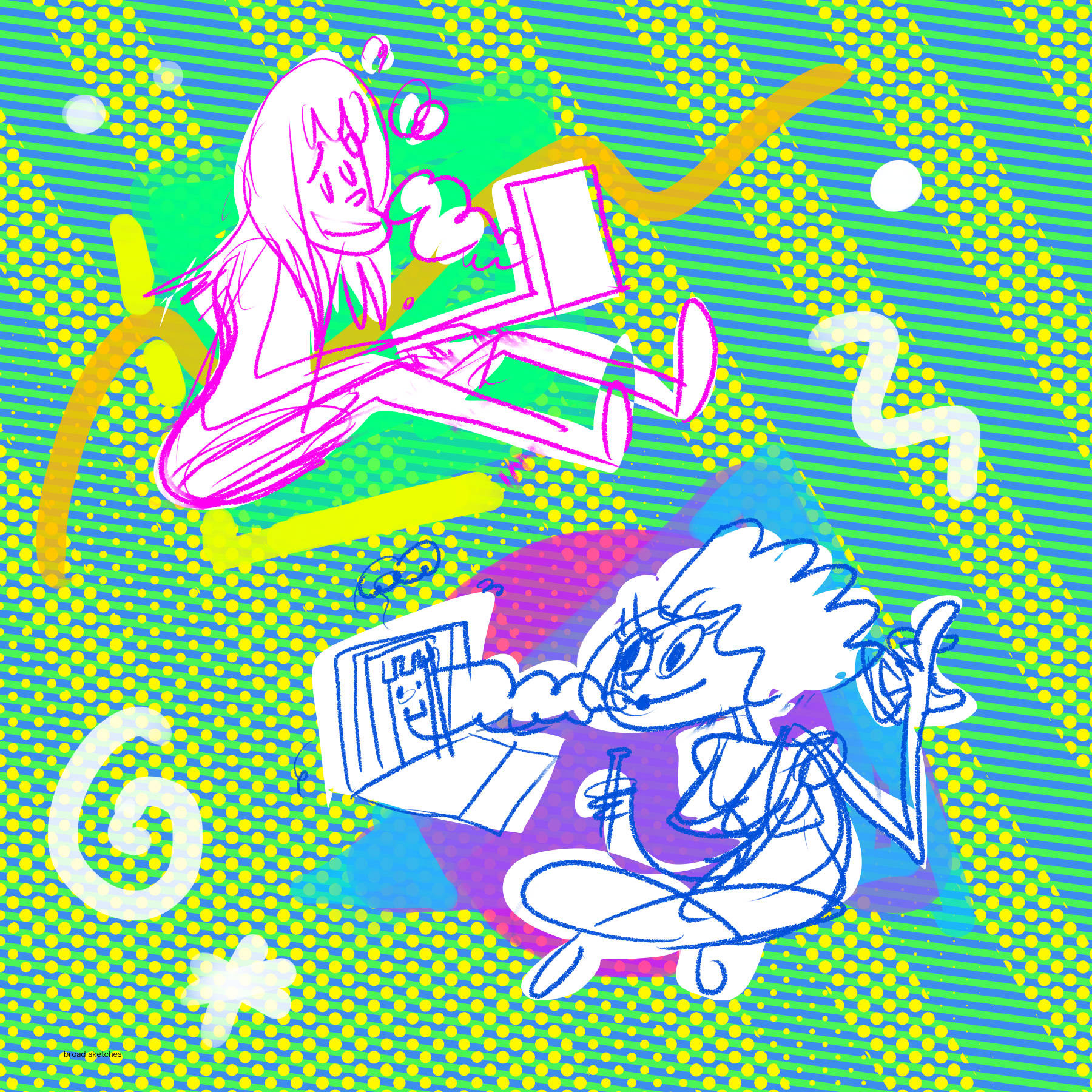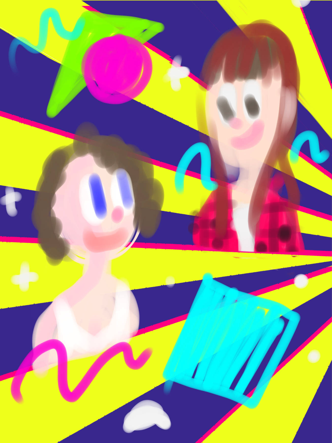This is my screen print for Gallery 1988's "Is THis THing On? #4". For thsi art shwo about funnypeopel I chose to draw the two funniest gals on TV rgiht no,. Abbi & Ilana from Borad City.