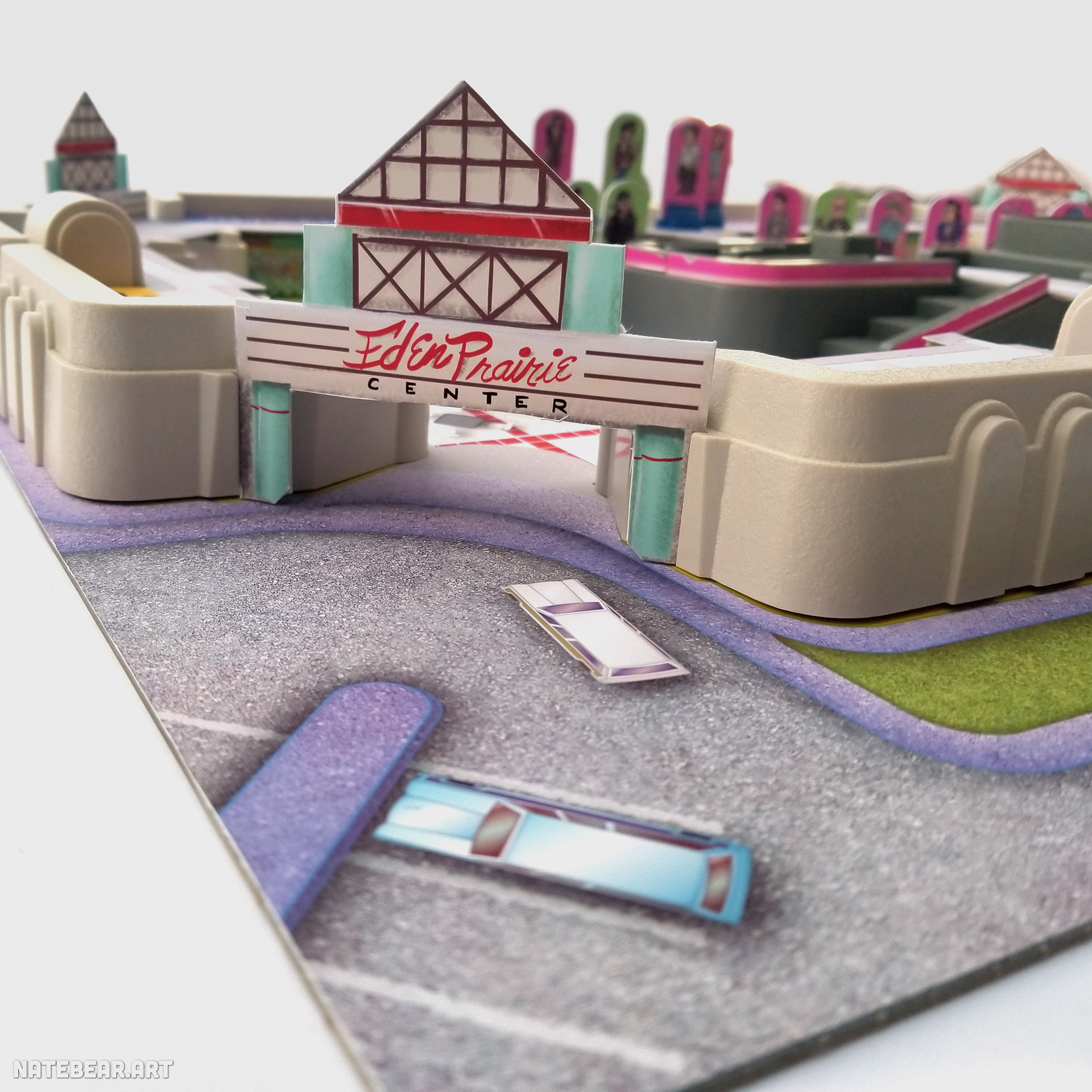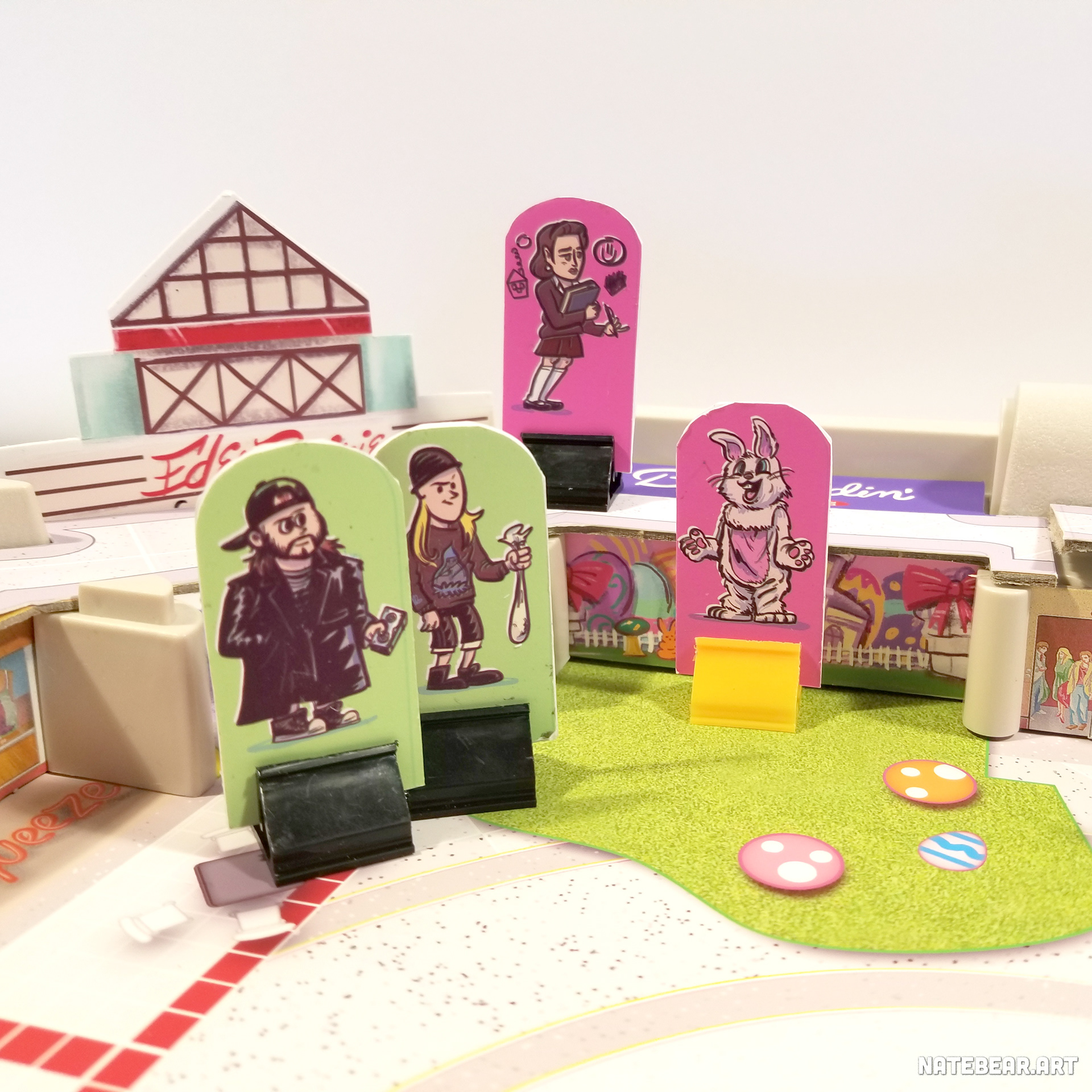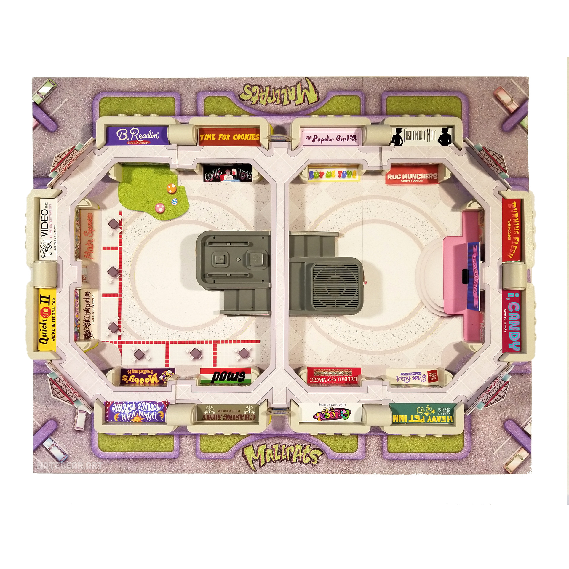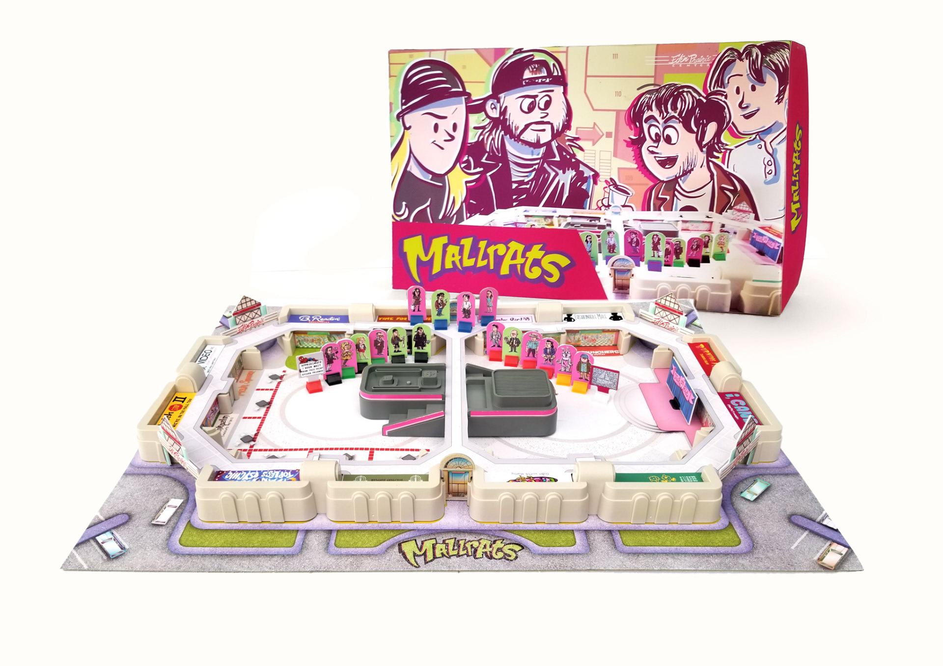Repurposing a gintage mall themed board game to create a one-of-a-kind art collectible based on Kevin Smith’s 90s classic film Mallrats.