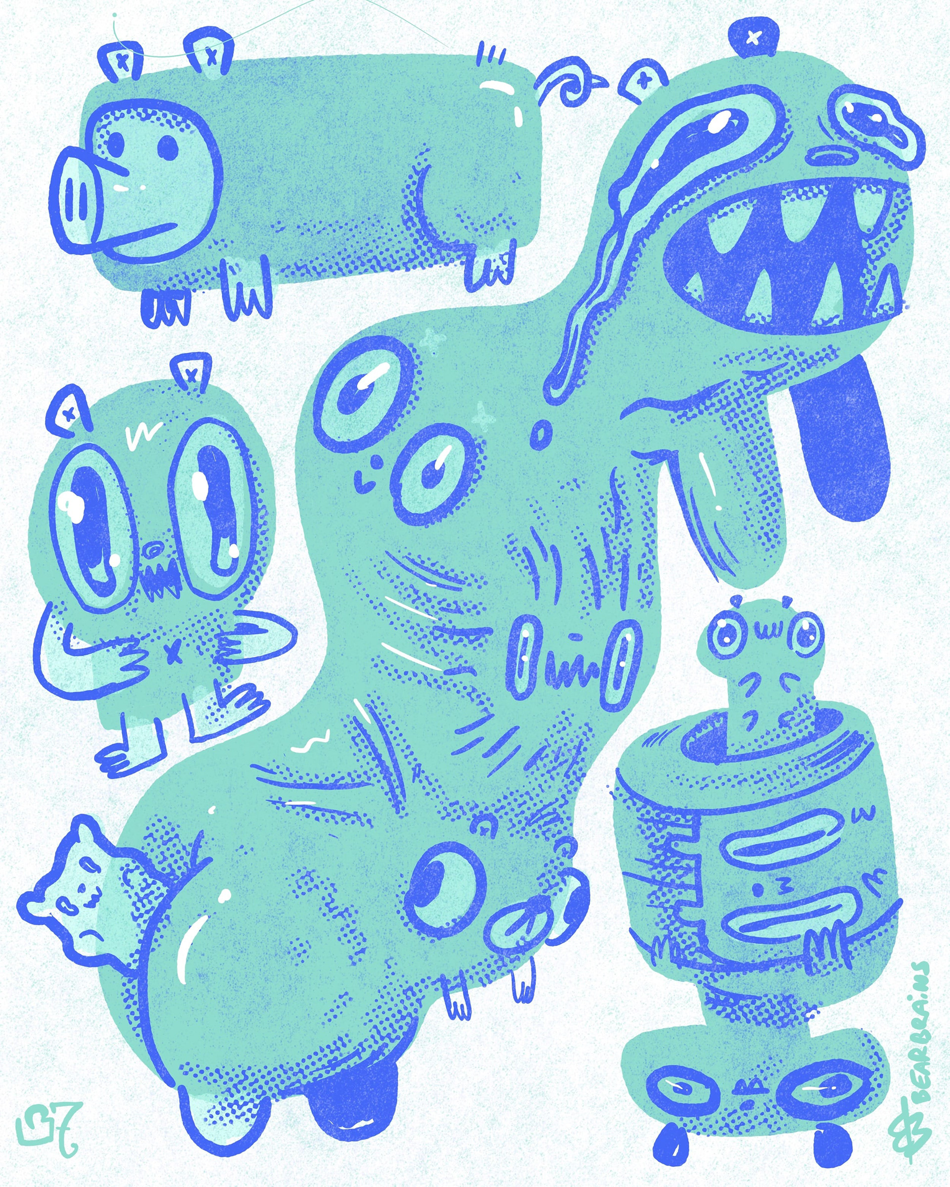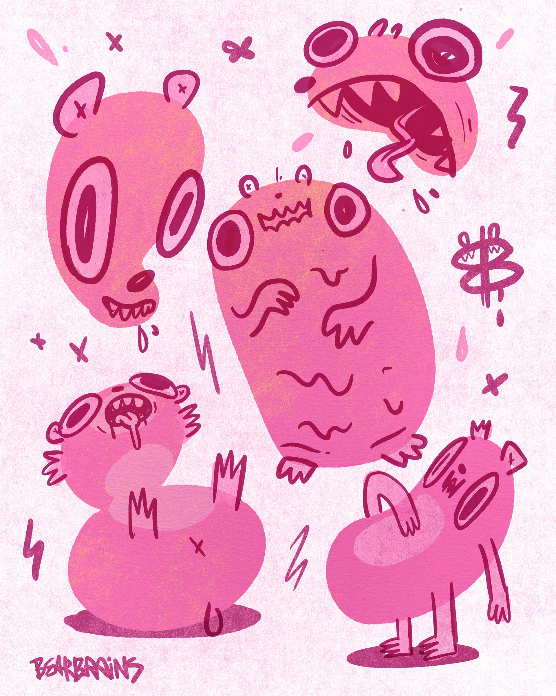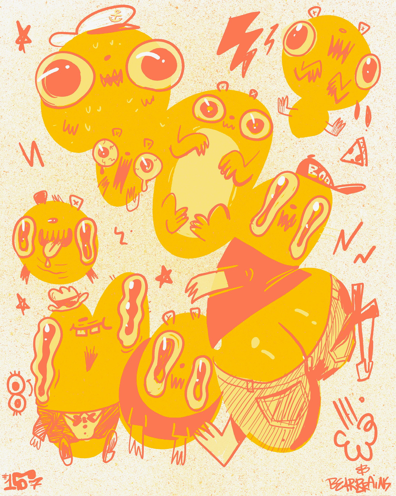 After couple weeks i stumble don the idea of drawing random blob shapes and challenging myself to turn each one into a bear.