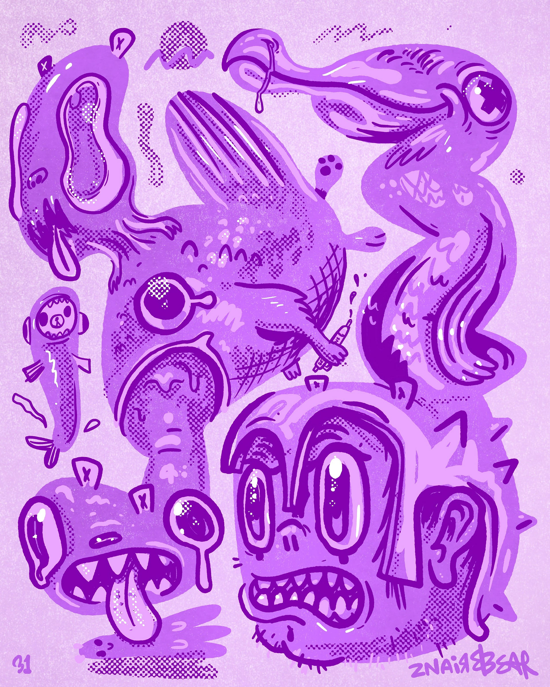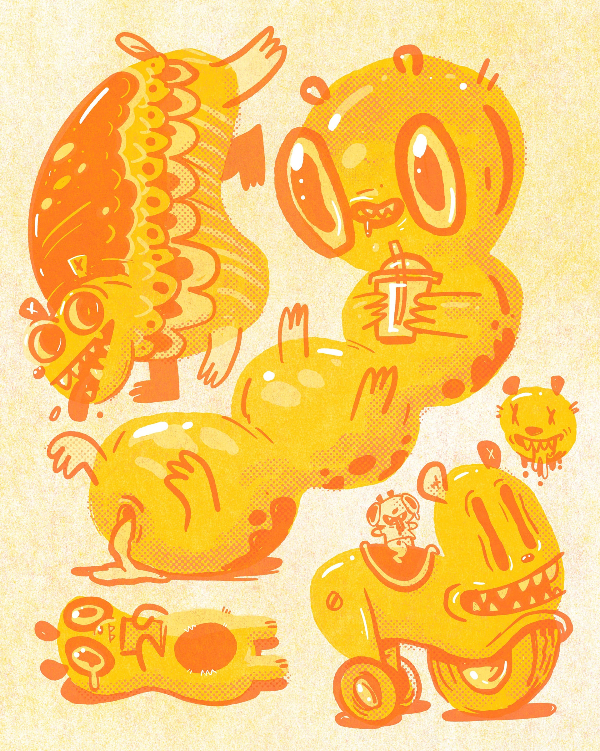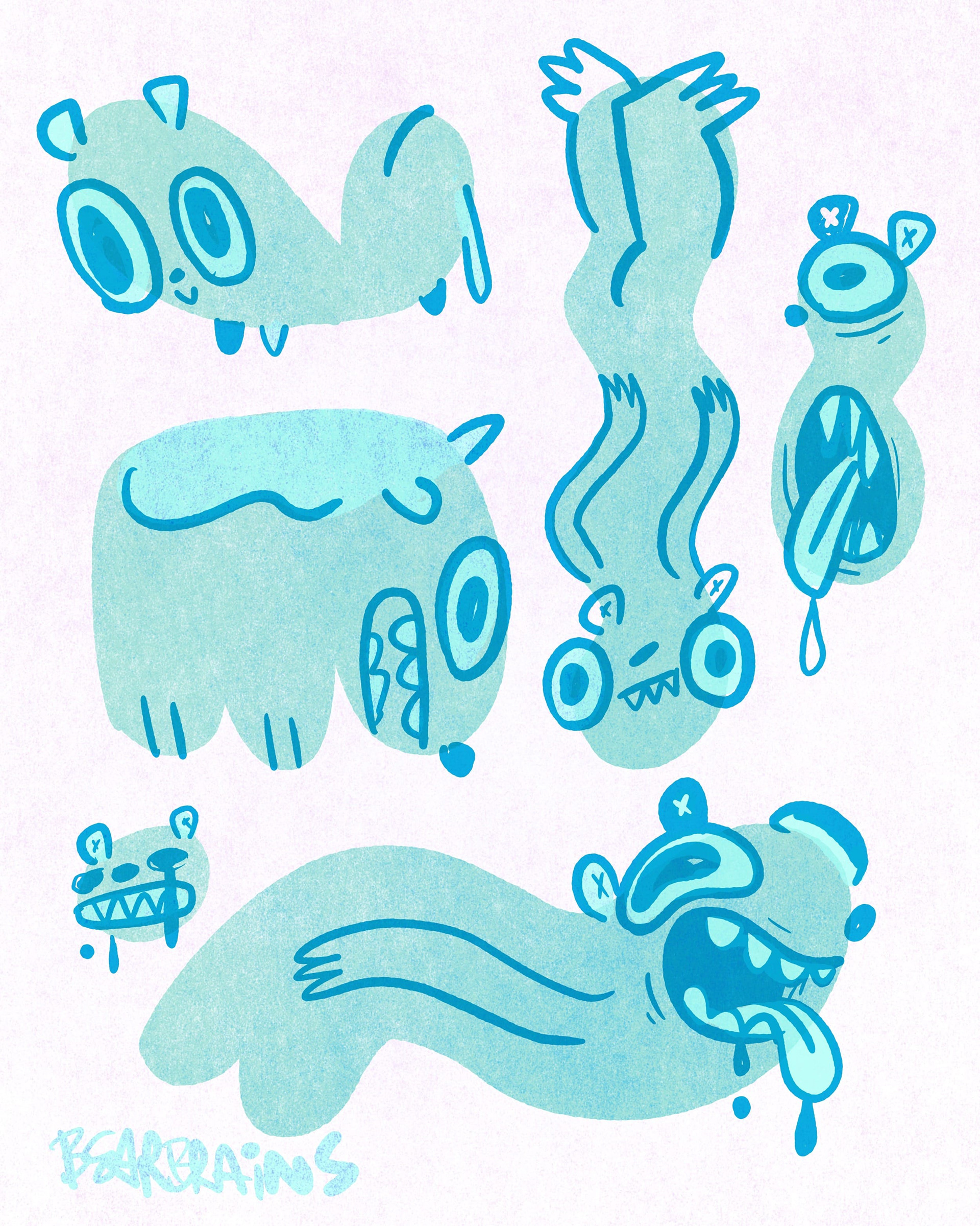 After couple weeks i stumble don the idea of drawing random blob shapes and challenging myself to turn each one into a bear.